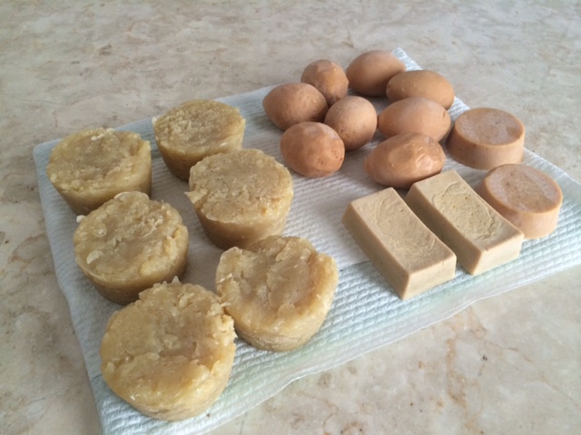 I left it for a day and then turned the puck shapes out and wondered what went wrong. I have since watched a variety of hot process soap making vids on YouTube and I think that, in retrospect I wasn’t that far off doing a reasonable job. I think I should have had a smaller crockpot or a larger volume of mixture and I needed to attend to it, stir it while it was cooking—poke and prod it as was my instinct.