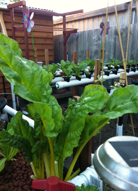 Chard loves the grow beds (NFT rails in the background)