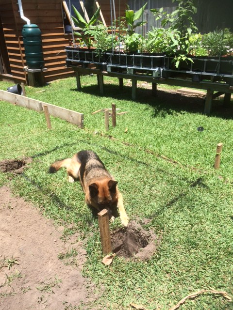 ‘Nice hole digging, dad!’ Maggie: chief hole inspector